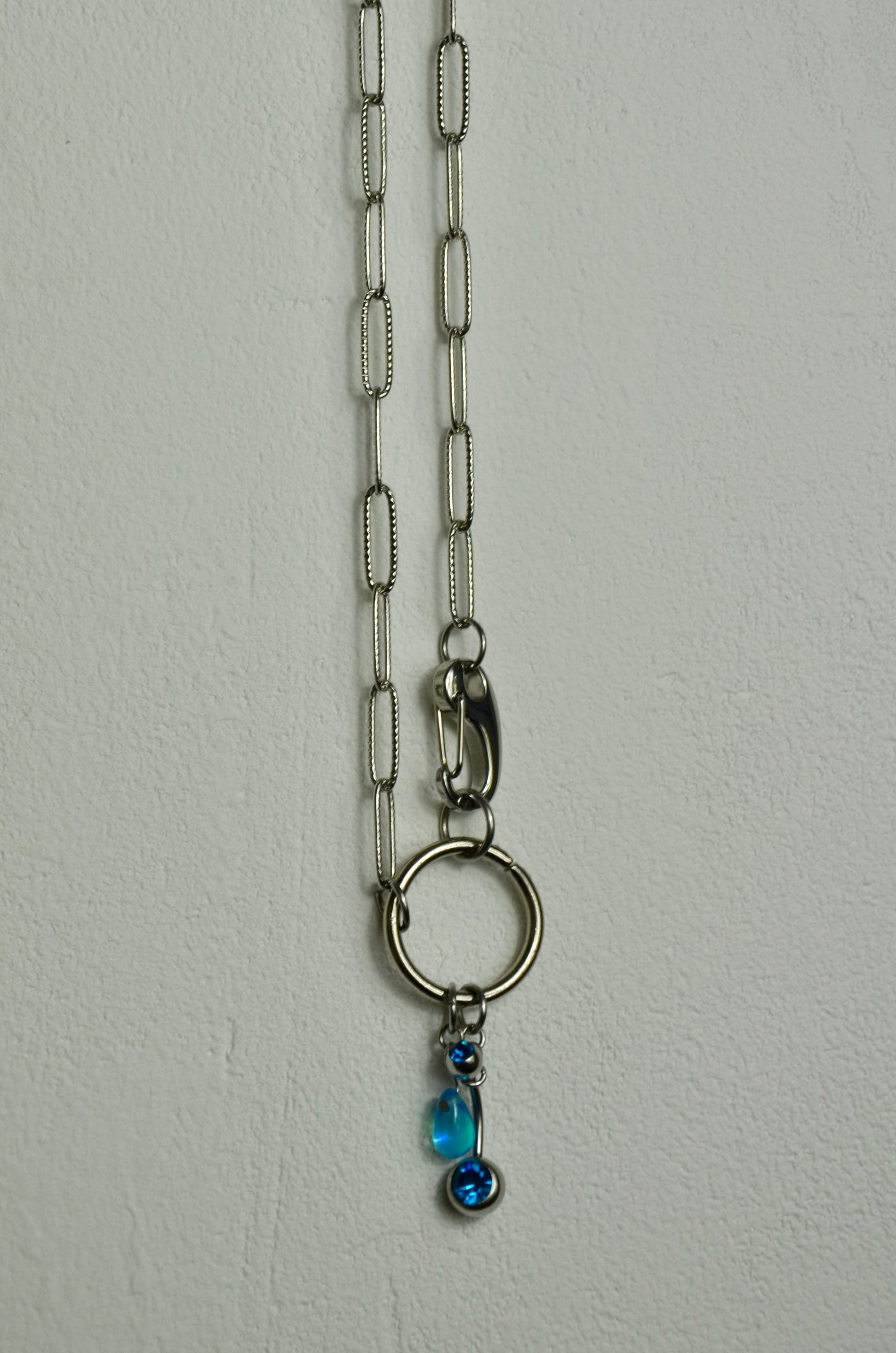 C'est une pièce unique fabriquée à la main dans le sud de la France. Elle est composée de perle et piercing upcyclés.