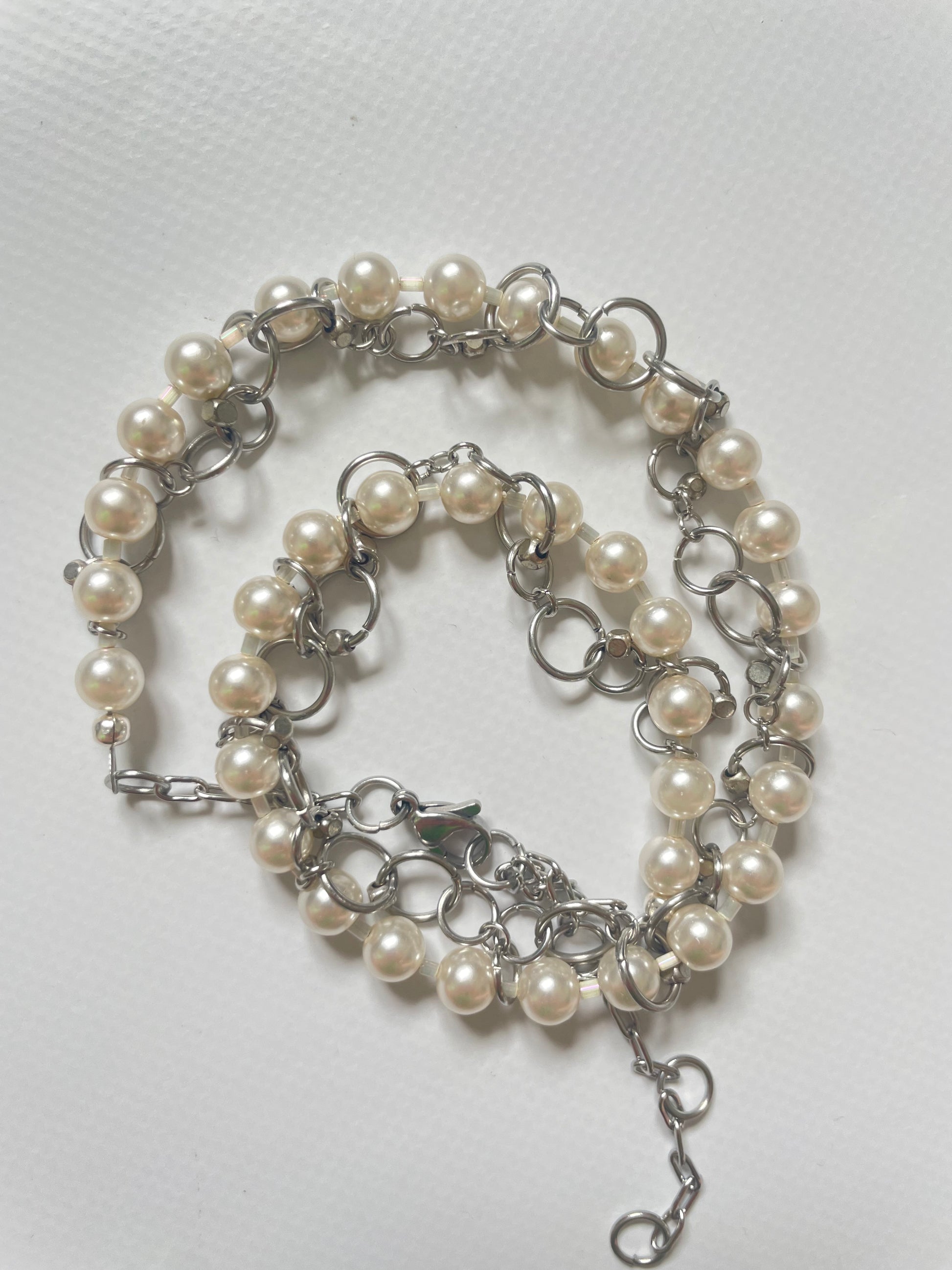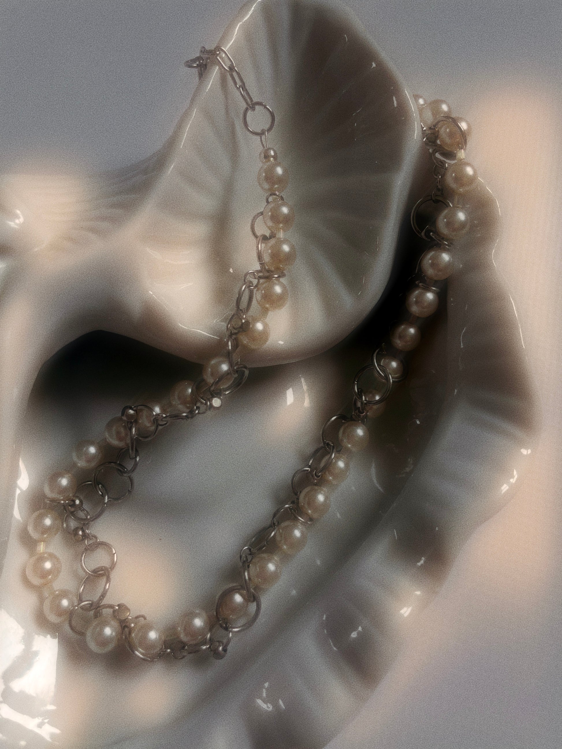 Il est composé de perles nacrées vintage, d'anneaux et de chaînes en acier inoxydable.