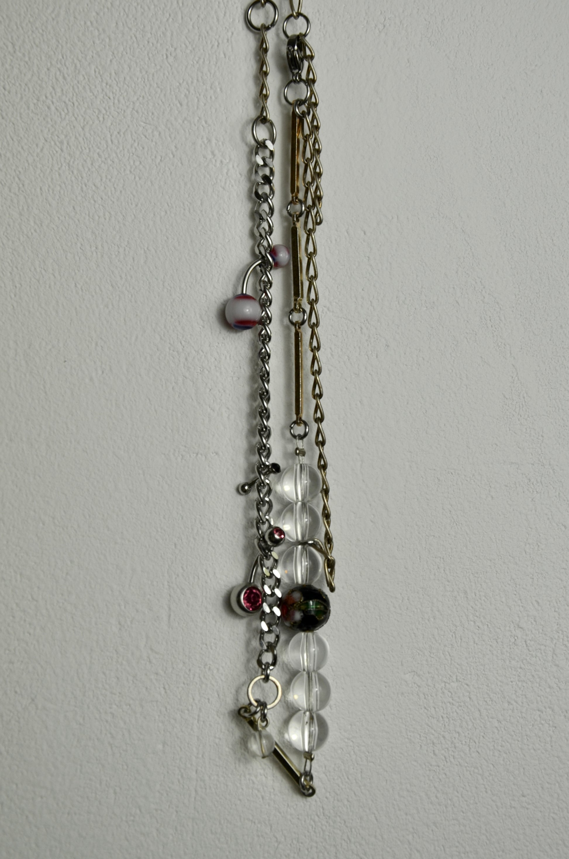 C'est une pièce unique fabriquée à la main dans le sud de la France. Elle est composée de perles et piercings upcyclés.