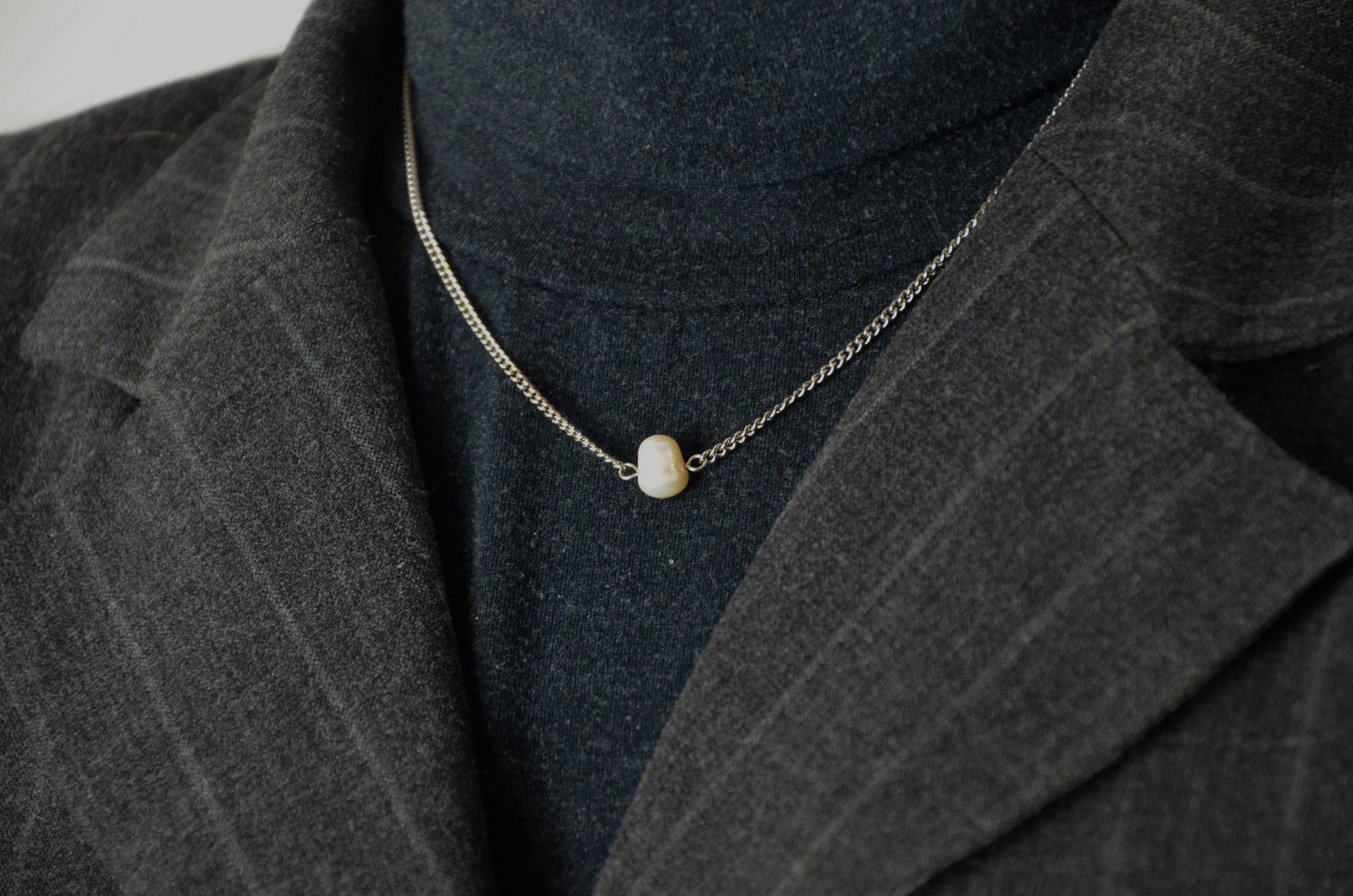 Le collier Perle d’eau douce est une pièce unique assemblée à la main en France.