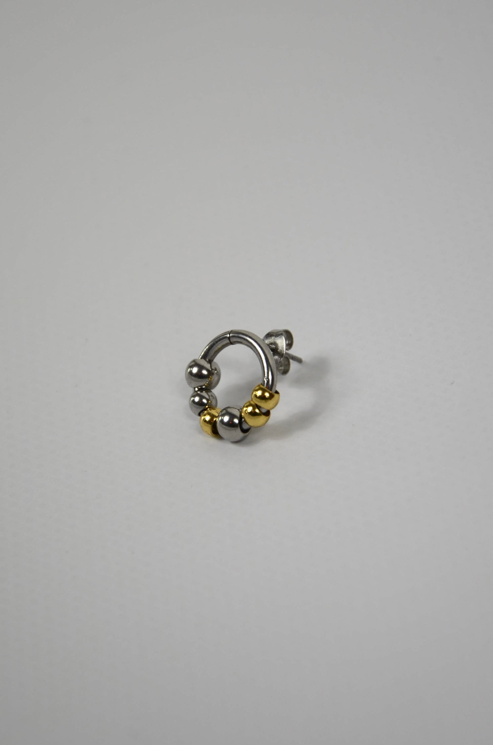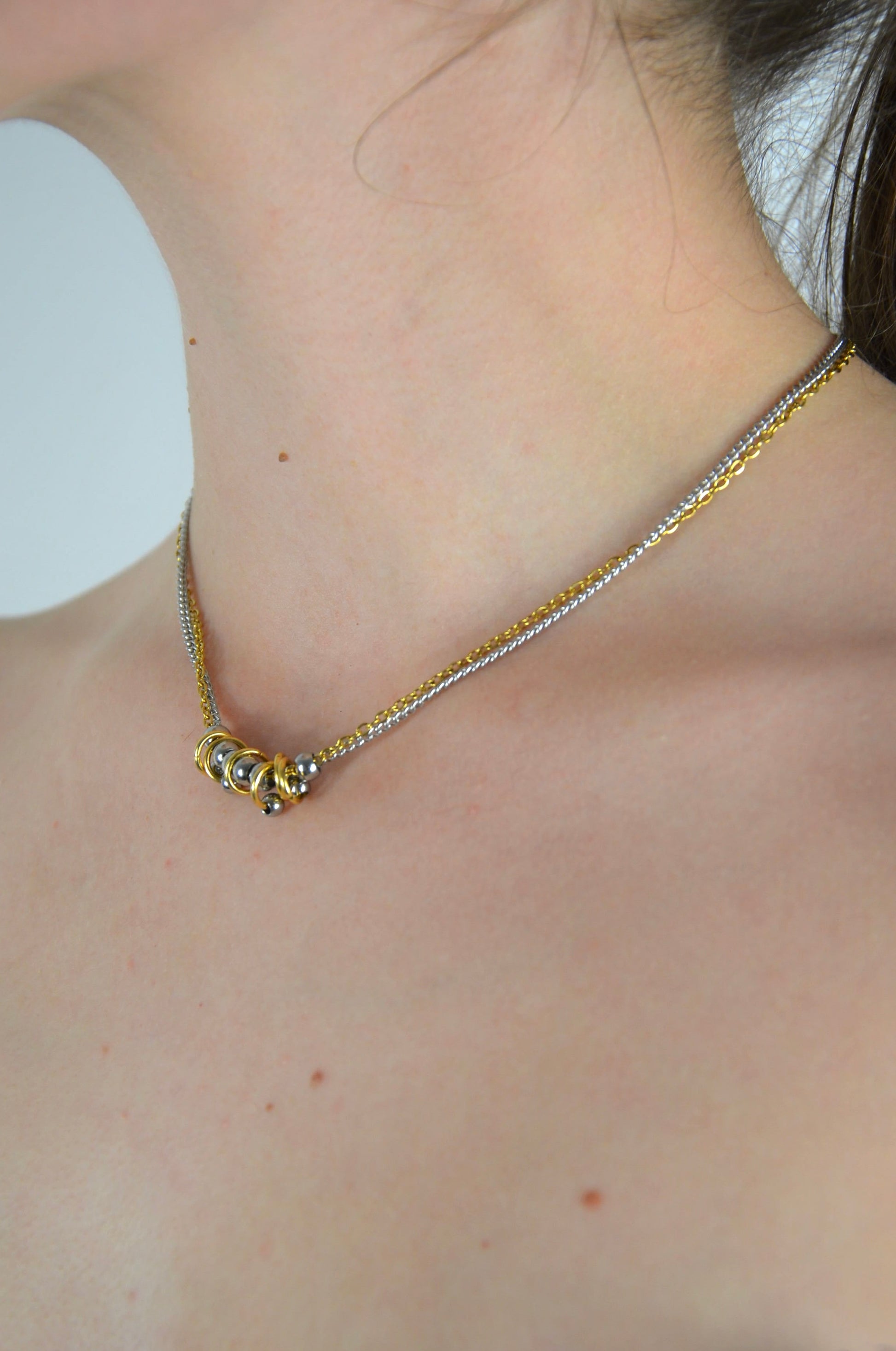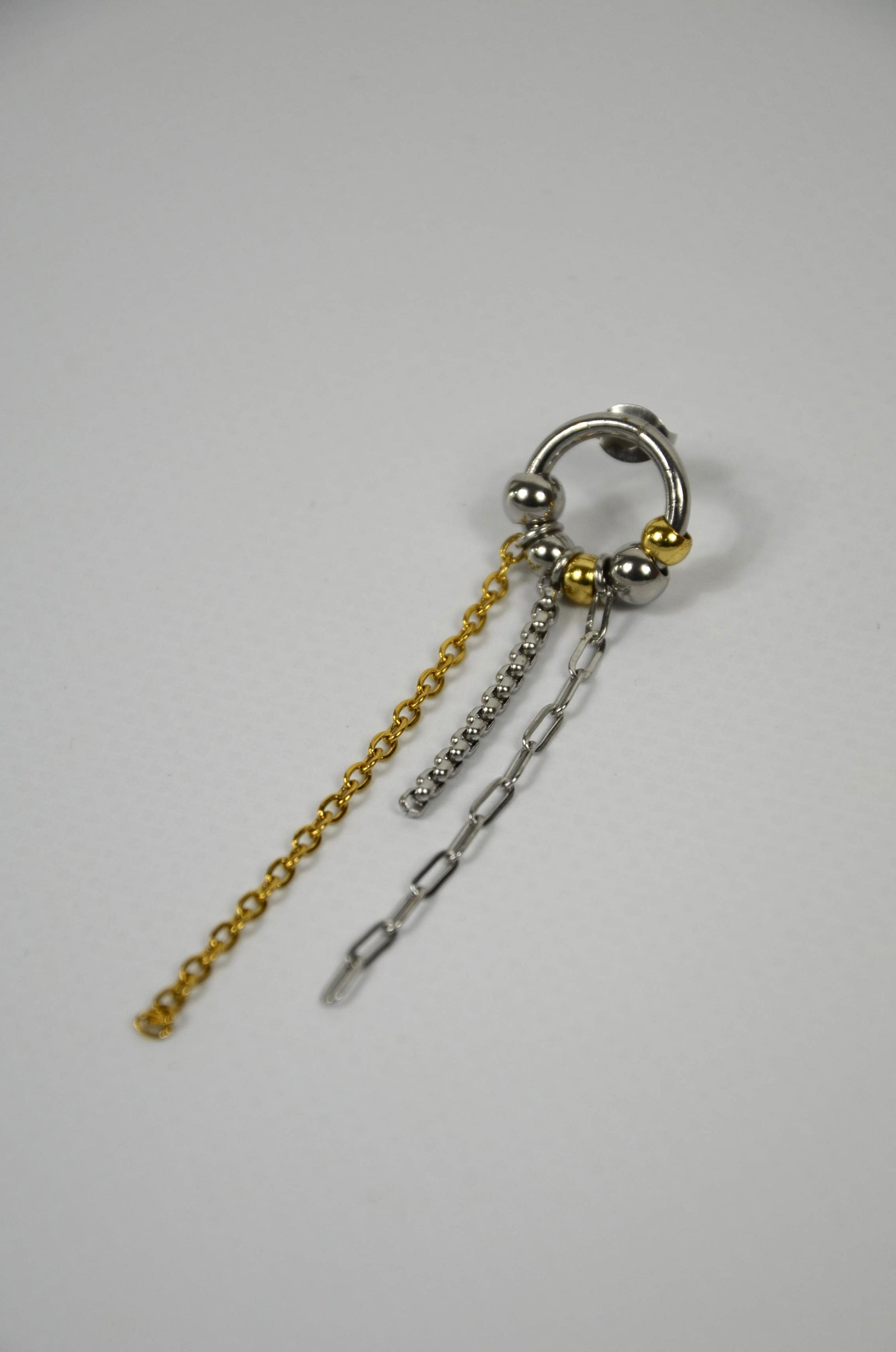 Cette parure est composée d'un collier et d'une paire de boucles d'oreilles assemblés à la main. Pièces en série limitée. (3 produits : collier Halo, 2 mono-boucles Halo : 1 longue et 1 courte)