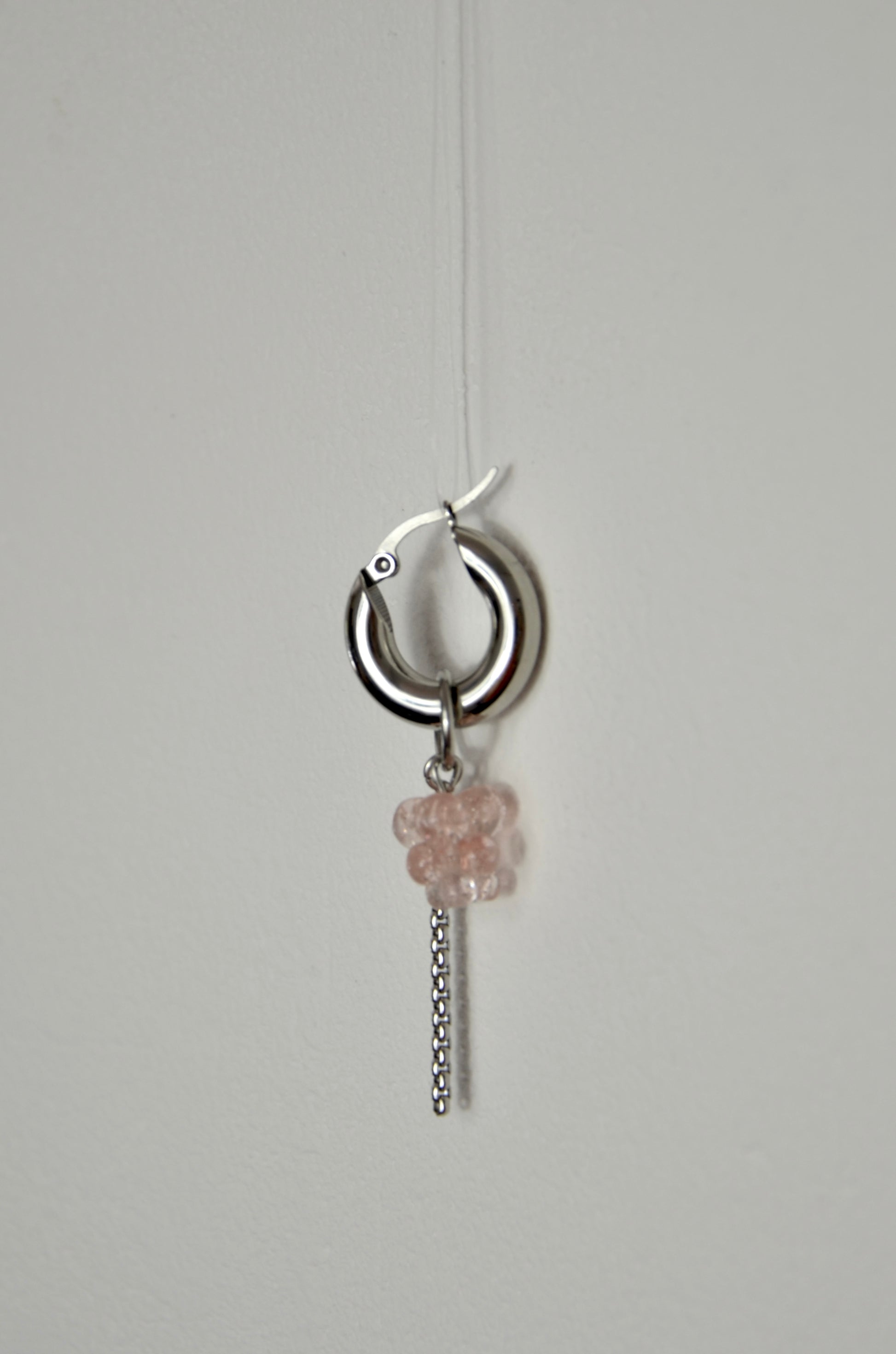 La mono-boucle Raisin est une pièce fabriquée à la main dans le sud de la France, disponible en série très limitée. Elle est composée de perles de seconde main.