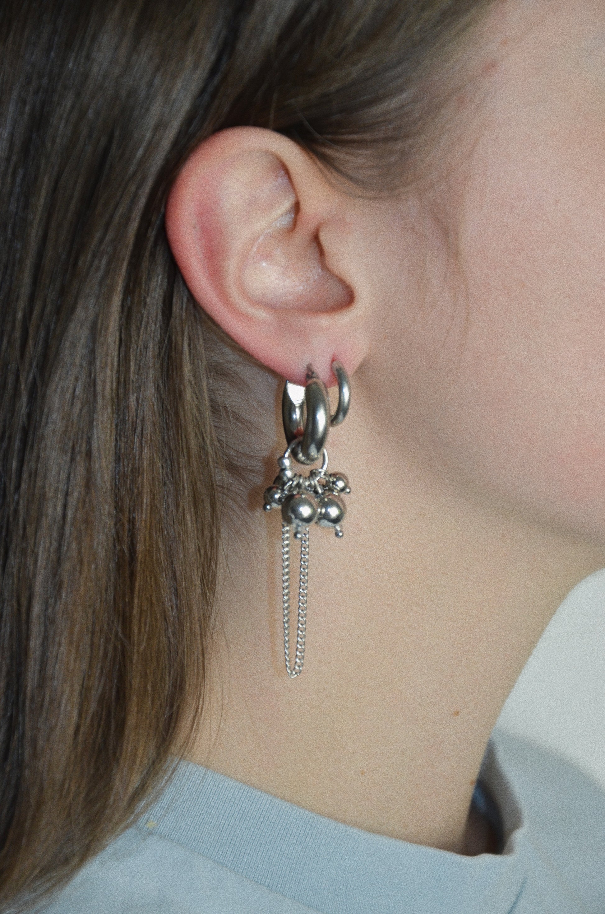 La mono-boucle Y2K est une pièce fabriquée à la main dans le sud de la France. Elle est disponible en série très limitée. Elle est composée de perles de seconde main, en verre et en acrylique.