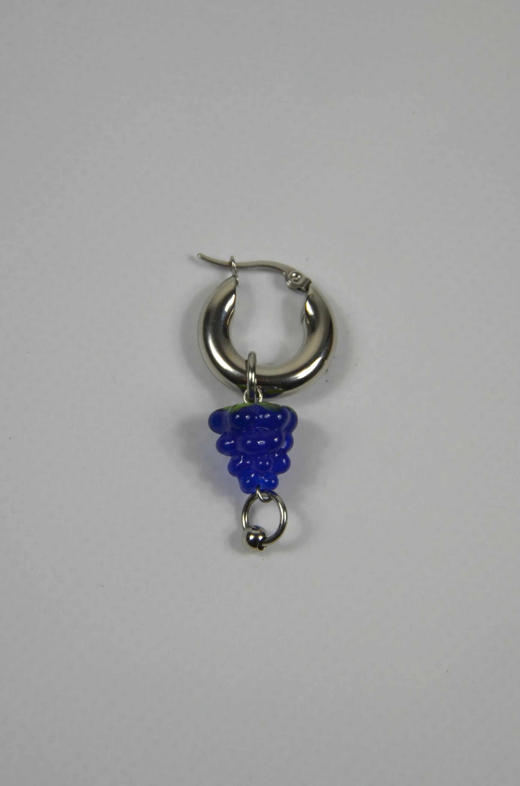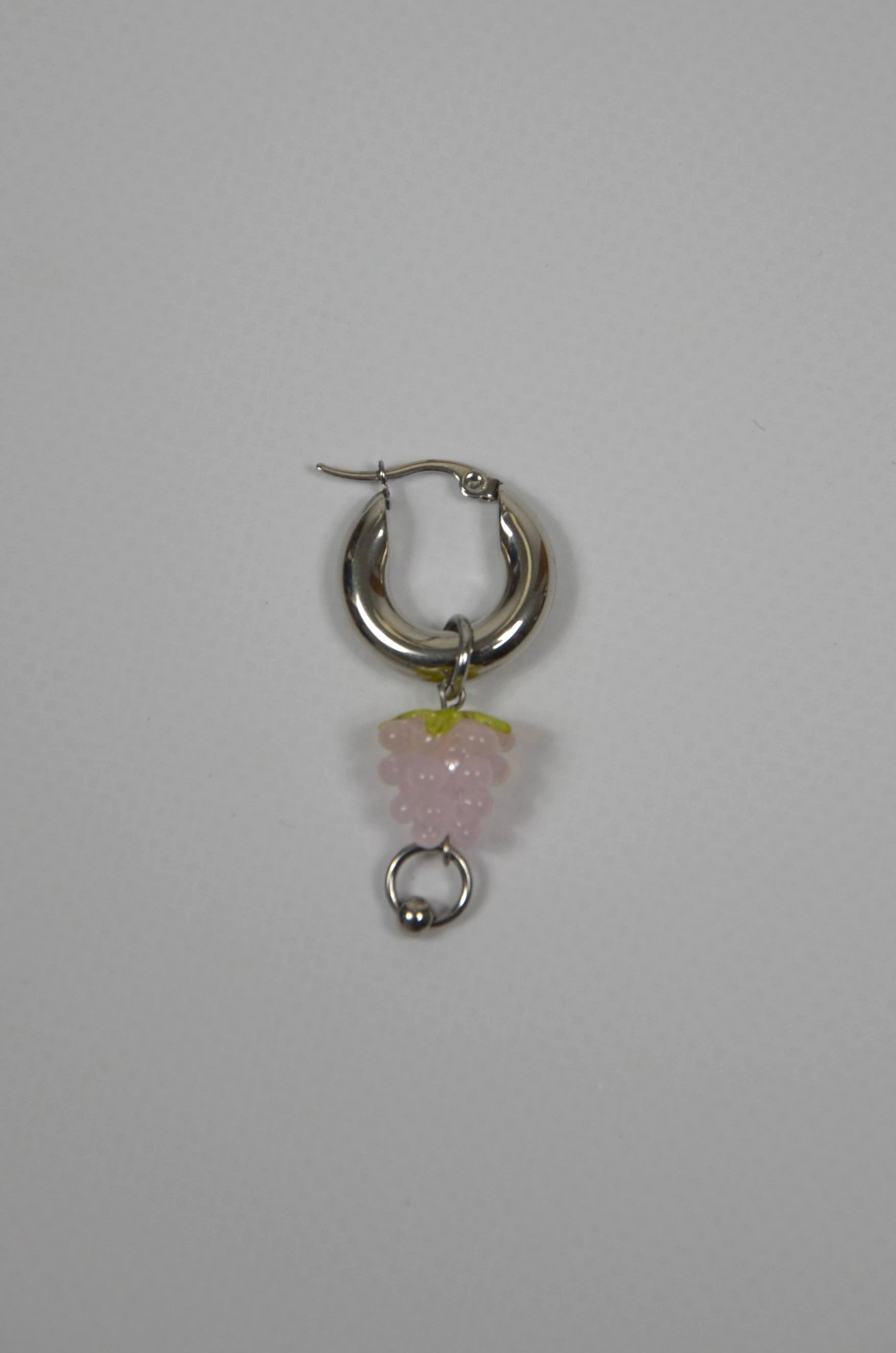 Les mono-boucles Fruit sont assemblées à la main dans le sud de la France. Elles sont composées de perle en verre et pendentifs argentés.