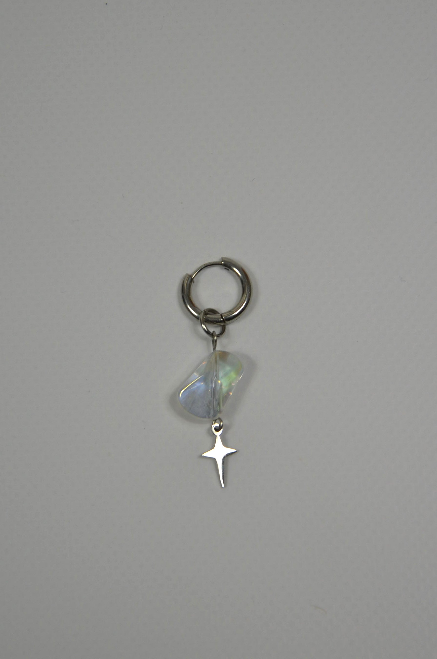 Les mono-boucles Transparence sont assemblées à la main dans le sud de la France. Elles sont composées de perle en verre et pendentifs argentés.