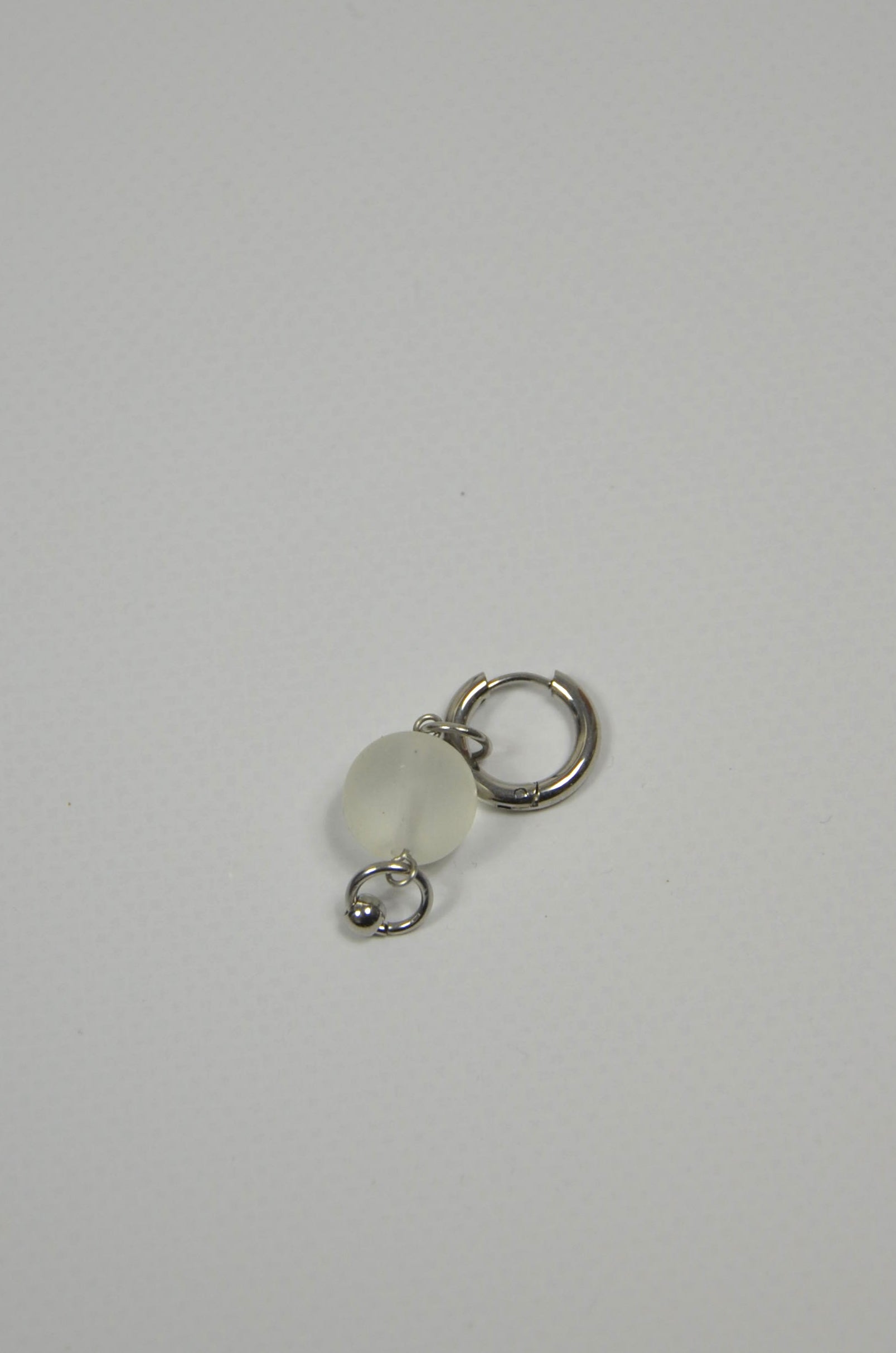 Les mono-boucles Verre mat sont assemblées à la main dans le sud de la France. Elles sont composées de perle en verre et pendentifs argentés.