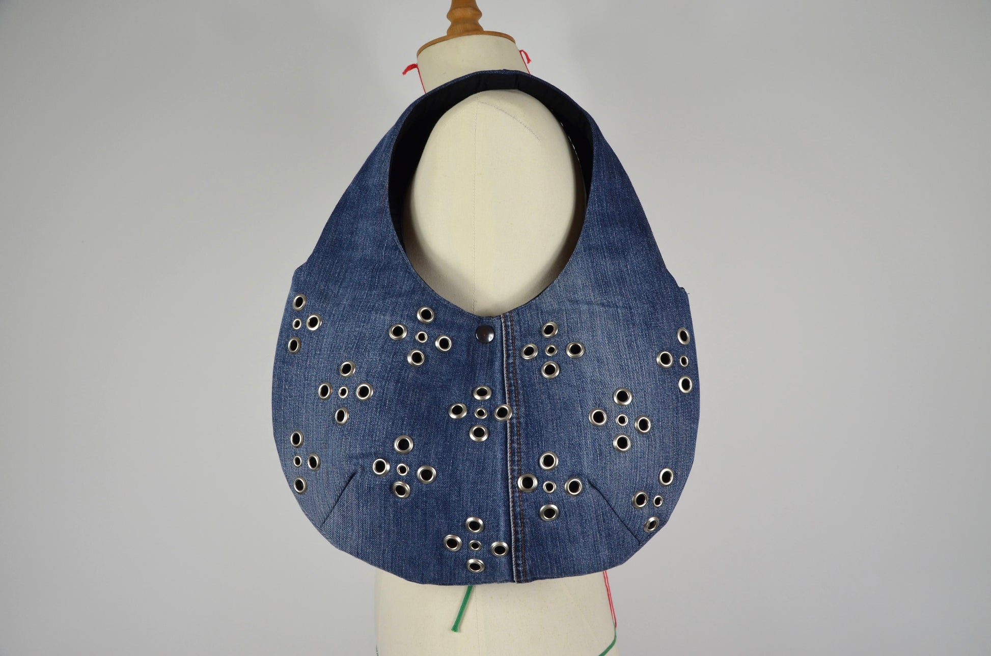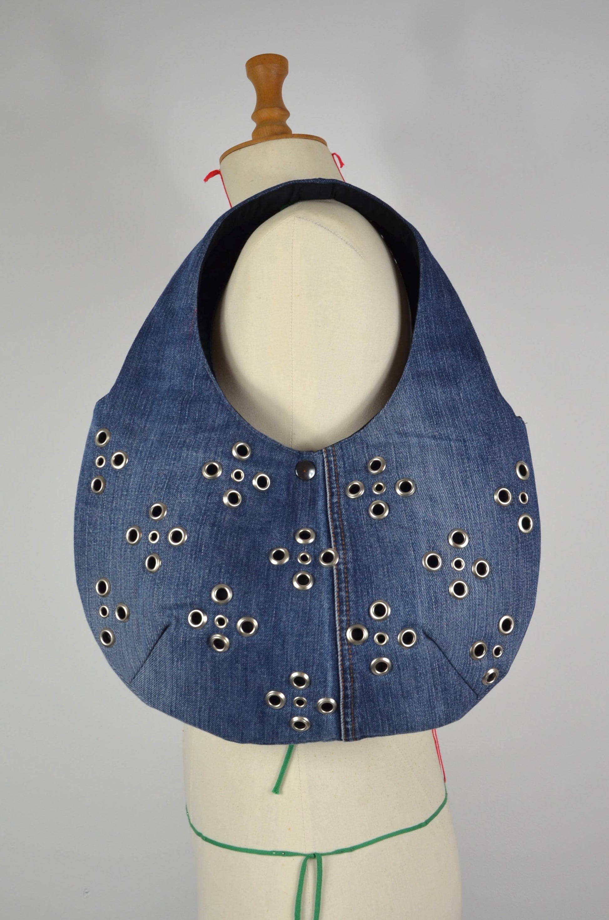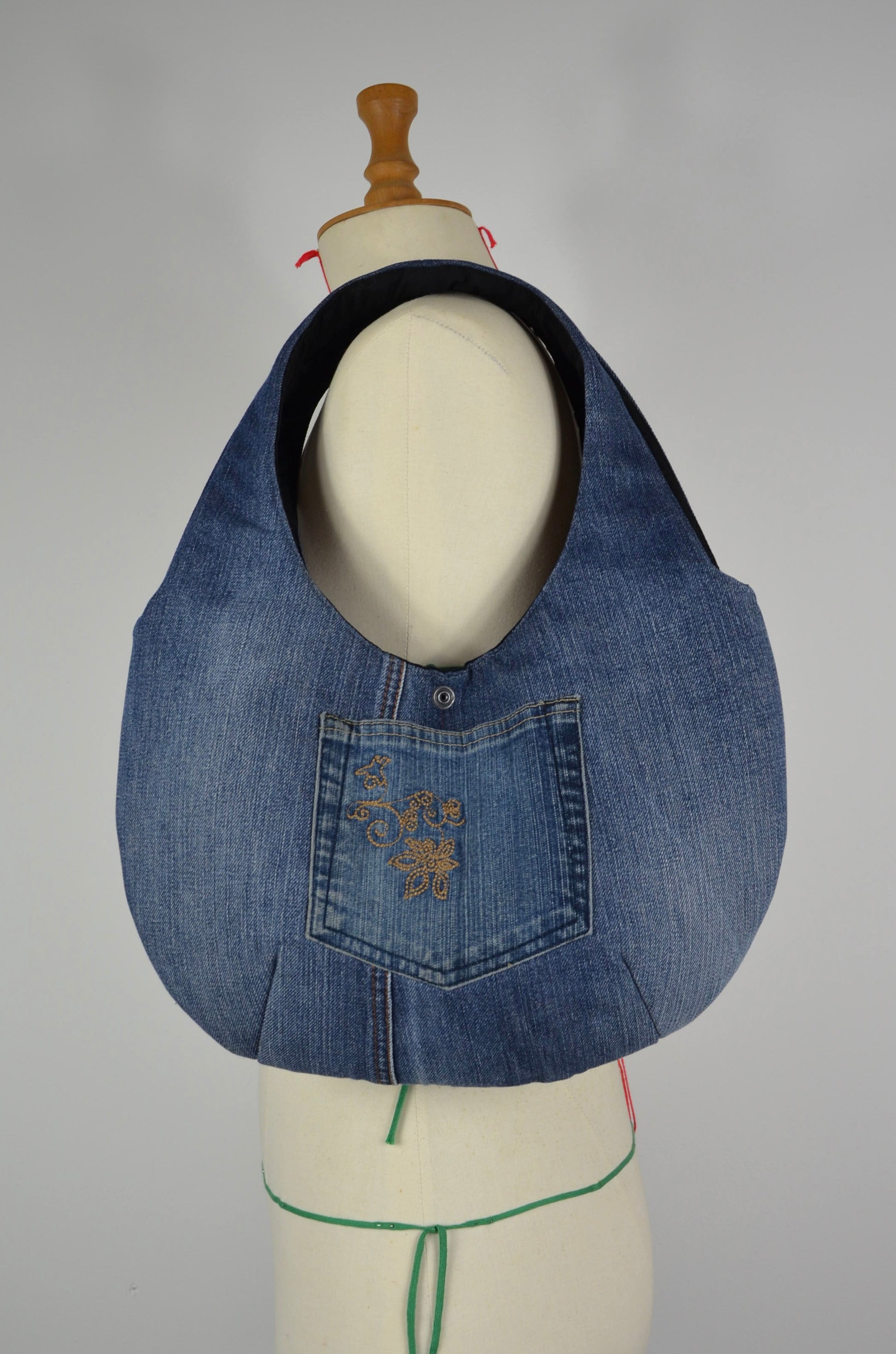 Le sac Fleurs est une pièce unique, fabriquée à partir d’oeillets et de jean de seconde main.