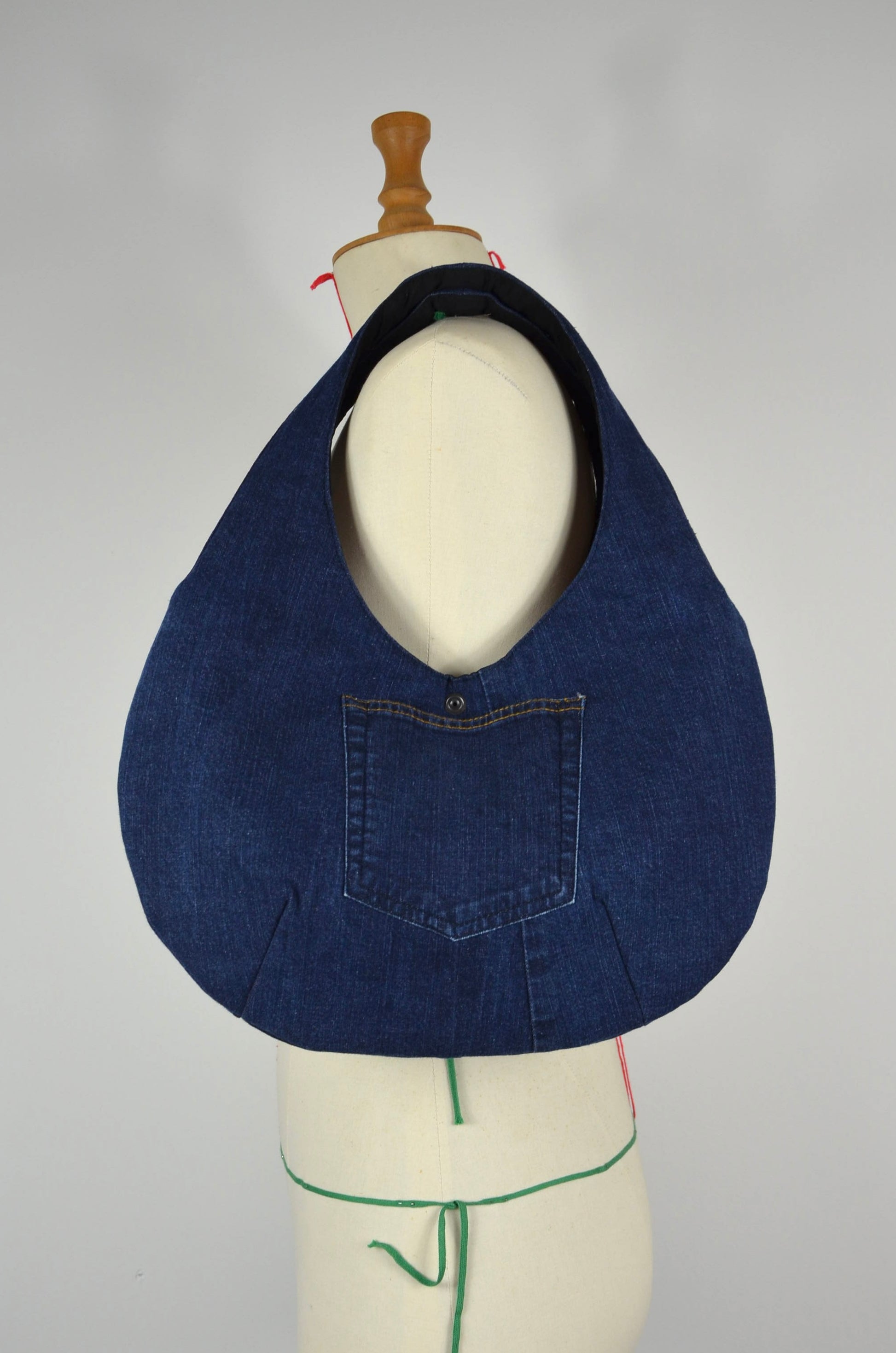 - Une des poches arrières du jean est cousue au dos du sac.