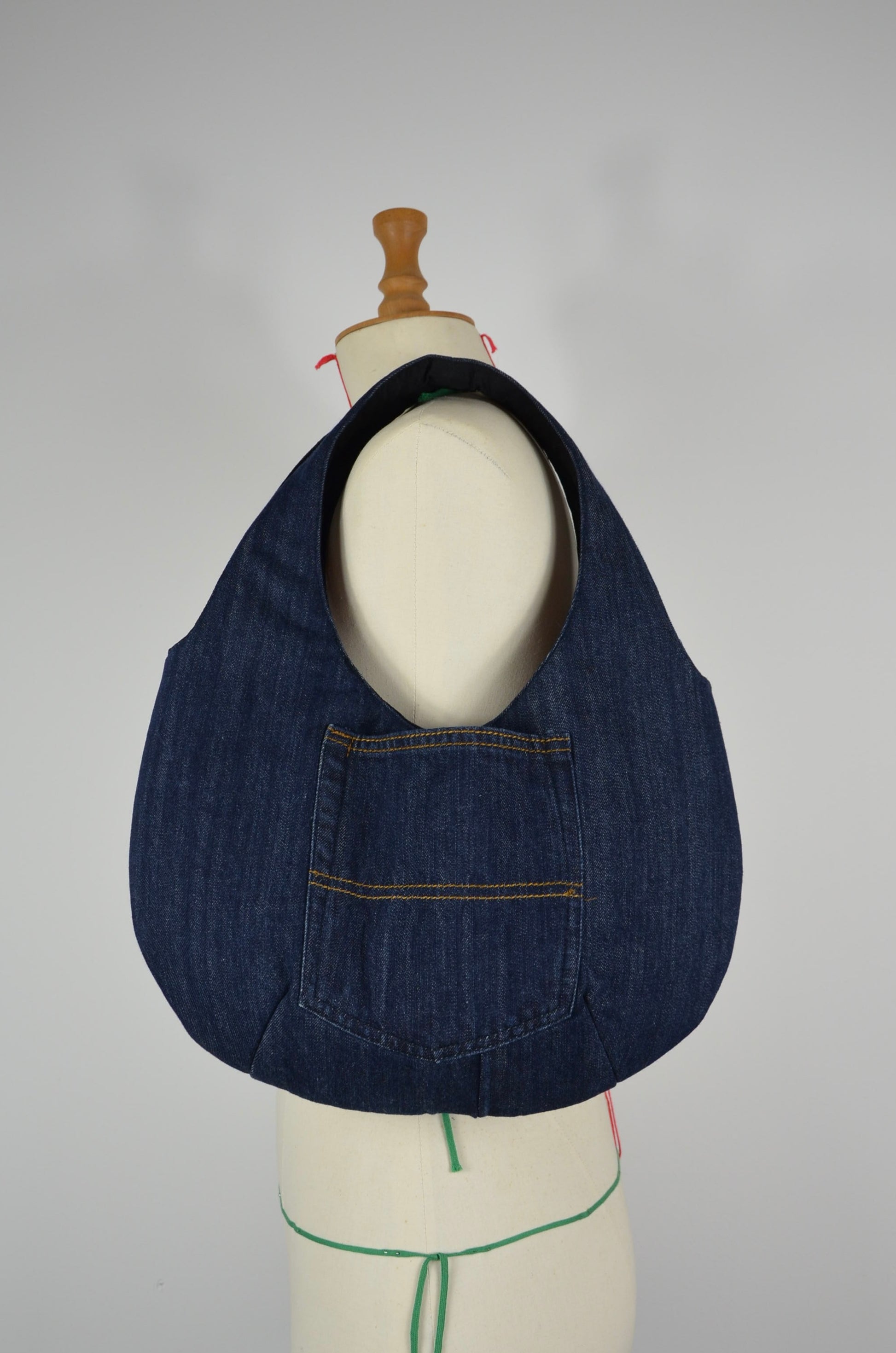 - Une des poches arrières du jean est cousue au dos du sac.