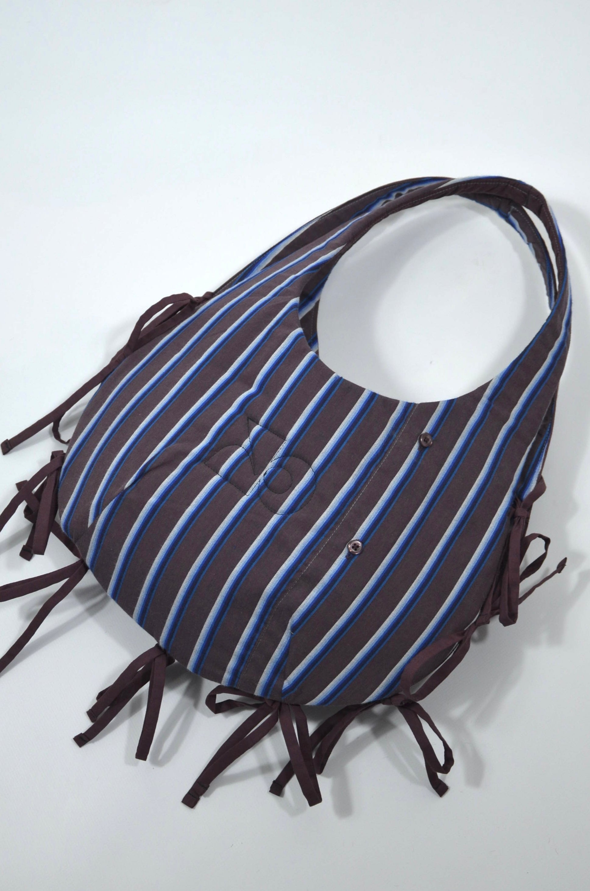 Pièce unique fabriquée à partir de chemises de seconde main, fait main dans le sud de la France. Sac réversible.